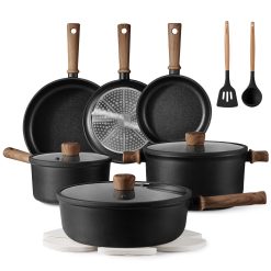 Bộ Nồi Chảo CAROTE 14 Món – Chống Dính Đá Granite, Tay Cầm Giả Gỗ