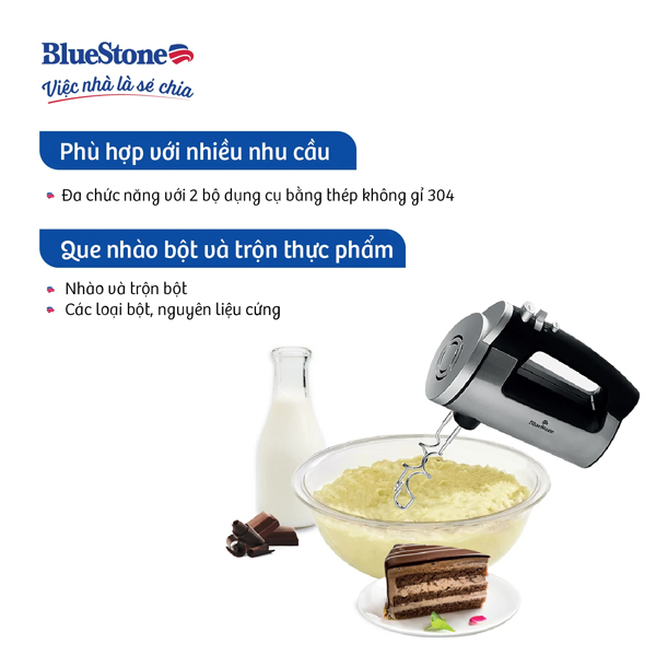 Máy đánh trứng cầm tay BlueStone HMB-6333S là thiết bị nhà bếp tiện dụng giúp đánh trứng, trộn bột, đánh kem nhanh chóng và dễ dàng.