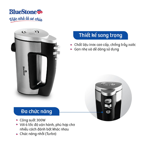 Máy Đánh Trứng Cầm Tay BlueStone HMB-6333S (300W, 6 Tốc Độ, Vỏ Inox Cao Cấp)
