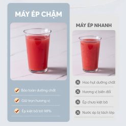 - Ép chậm giúp giữ lại toàn bộ vitamin, enzyme và hương vị tự nhiên.