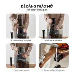 Thiết kế tháo rời nhanh, các bộ phận có thể rửa dưới vòi nước, giúp tiết kiệm thời gian và đảm bảo vệ sinh tuyệt đối.
