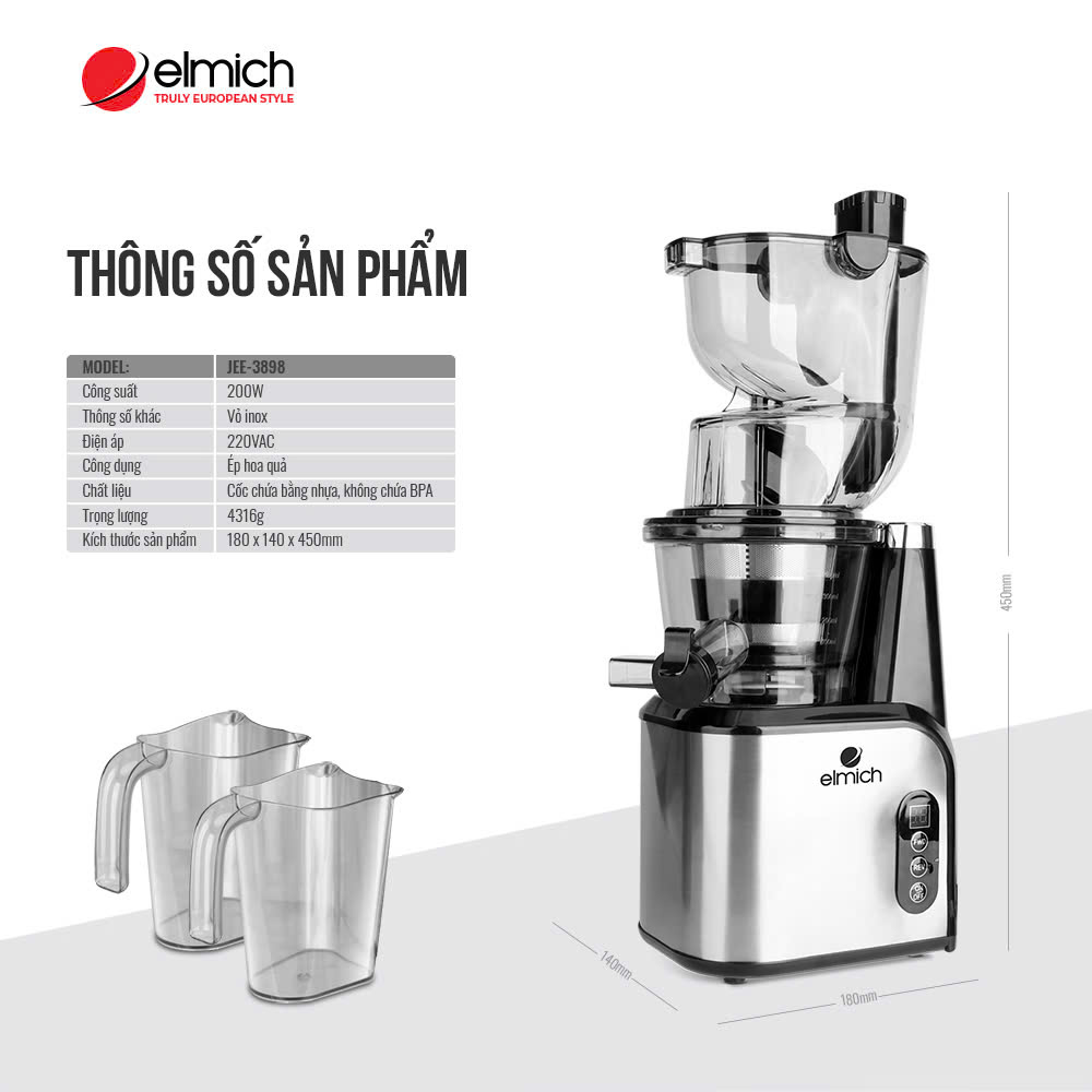 Máy Ép Chậm Trái Cây Elmich JEE-3898 (Công Suất 200W, Ép Kiệt Bã, Giữ Nguyên Dinh Dưỡng)
