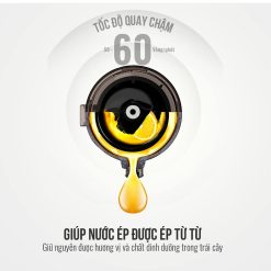 Với công nghệ ép chậm chỉ 50–60 vòng/phút, sản phẩm giúp vắt kiệt bã, giữ trọn hương vị tự nhiên và màu sắc tươi mới của trái cây.