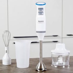Kèm theo cốc đong 500ml, cối xay 350ml và đầu đánh trứng – đáp ứng đa dạng nhu cầu nấu ăn, làm bánh, sinh tố, nước sốt.