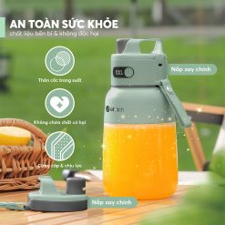 Cốc xay và cốc đựng được làm từ nhựa cao cấp, không chứa BPA, an toàn cho sức khỏe và dễ vệ sinh sau khi sử dụng.