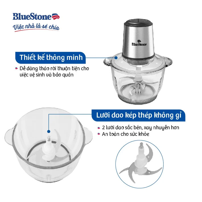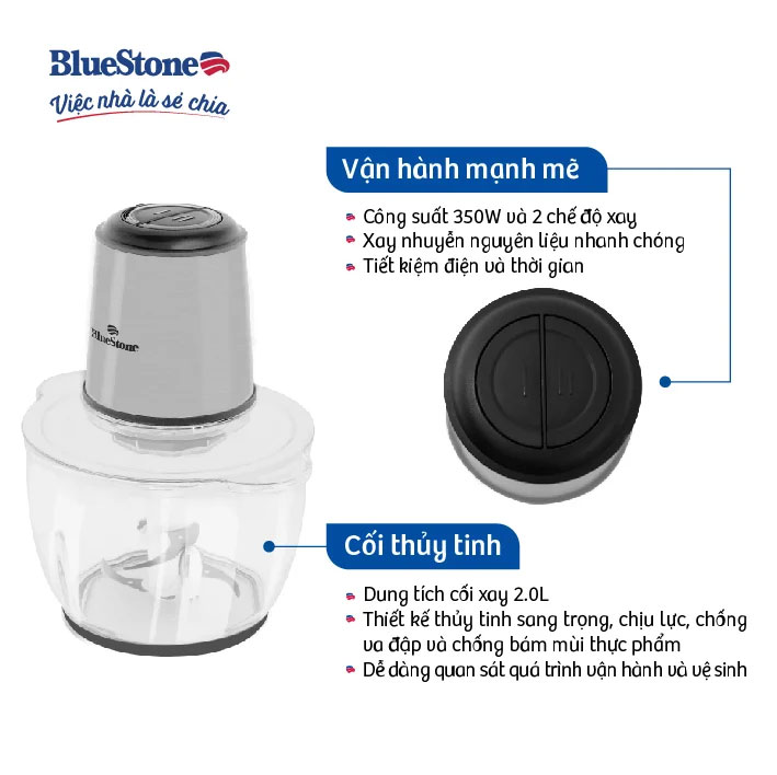 Máy Xay Thịt Bluestone CHB-5145 (Dung Tích 2L, Cối Thủy Tinh, Lưỡi Dao Inox 4 Cánh)