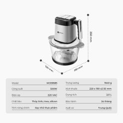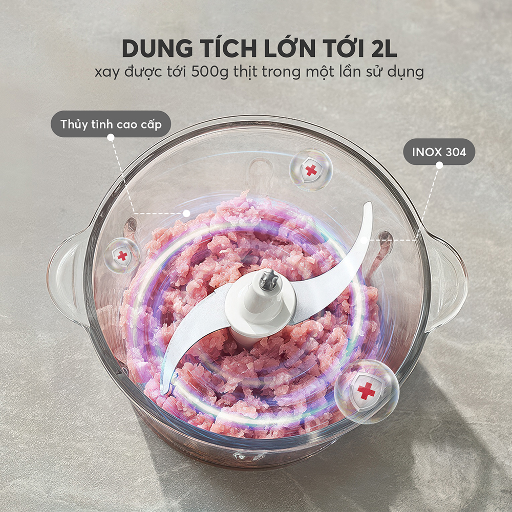 | Dung tích cối | 2 lít (xay được khoảng 0.5kg thịt mỗi lần) |