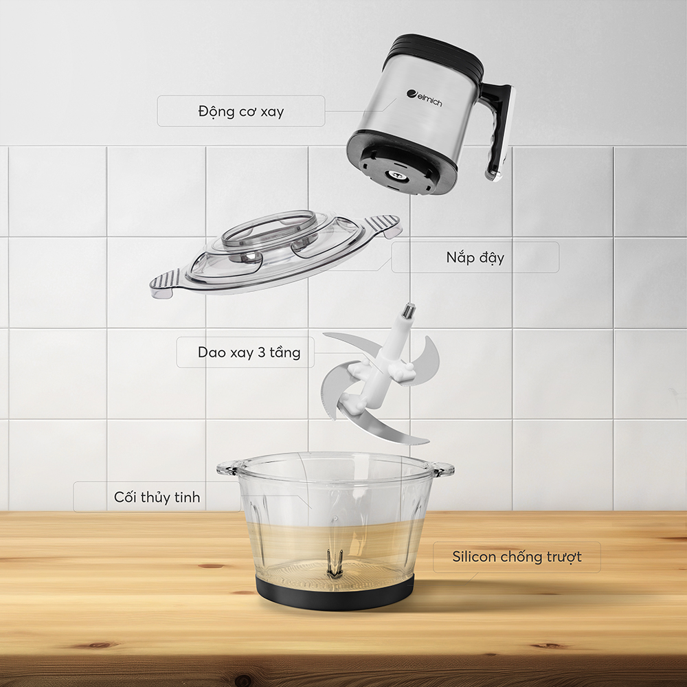 giúp xay nhuyễn thịt, cá, rau củ, hành, tỏi, ớt hay hạt khô một cách nhanh chóng và an toàn.